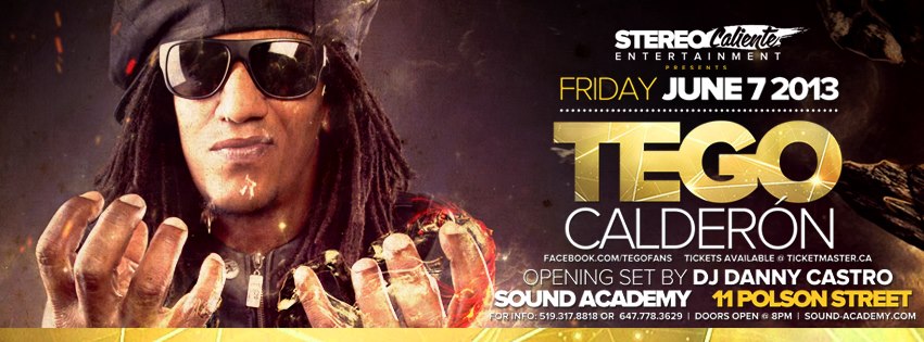 Por primera vez en Canadá, ¨el grandpa¨, Tego Calderón, se presentara en el Sound Academy de Toronto (11 Polson Street) el viernes, 7 de Junio, 2013.